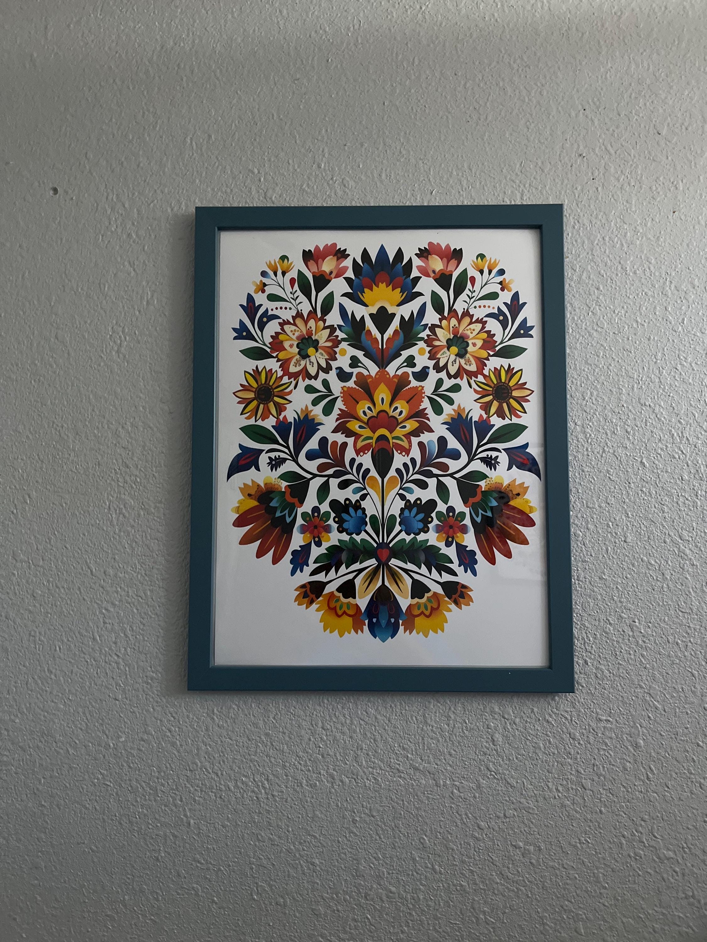 Inspired by Otomi embroidery and Papel Amate, this set of three floral prints celebrates Mexican heritage with bold motifs, rich colors, and symmetrical designs. Perfect for adding warmth and boho charm to your living room, bedroom, workspace, or cafe.