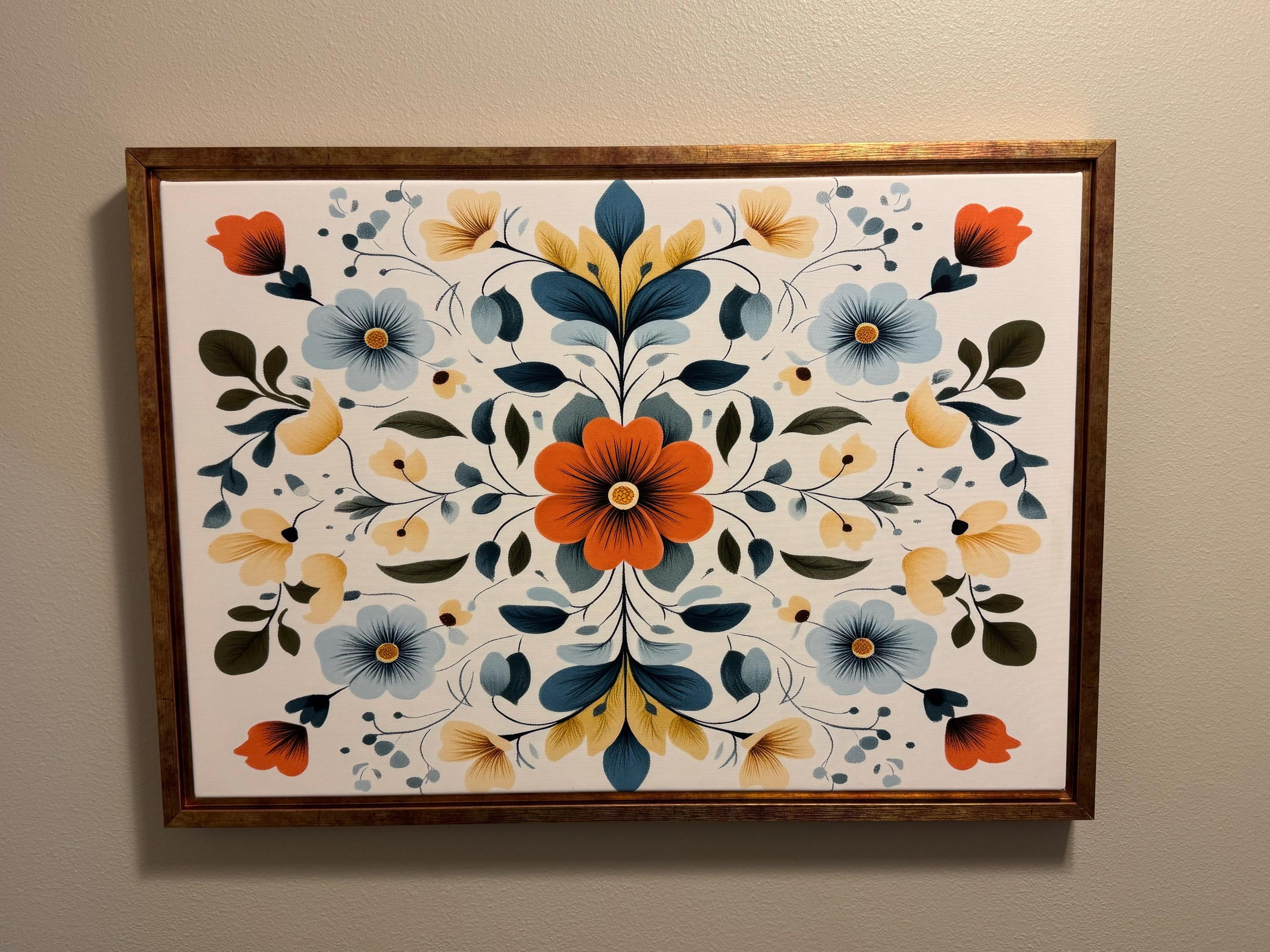 Bring warmth and harmony to your space with this Scandinavian floral folk art print.