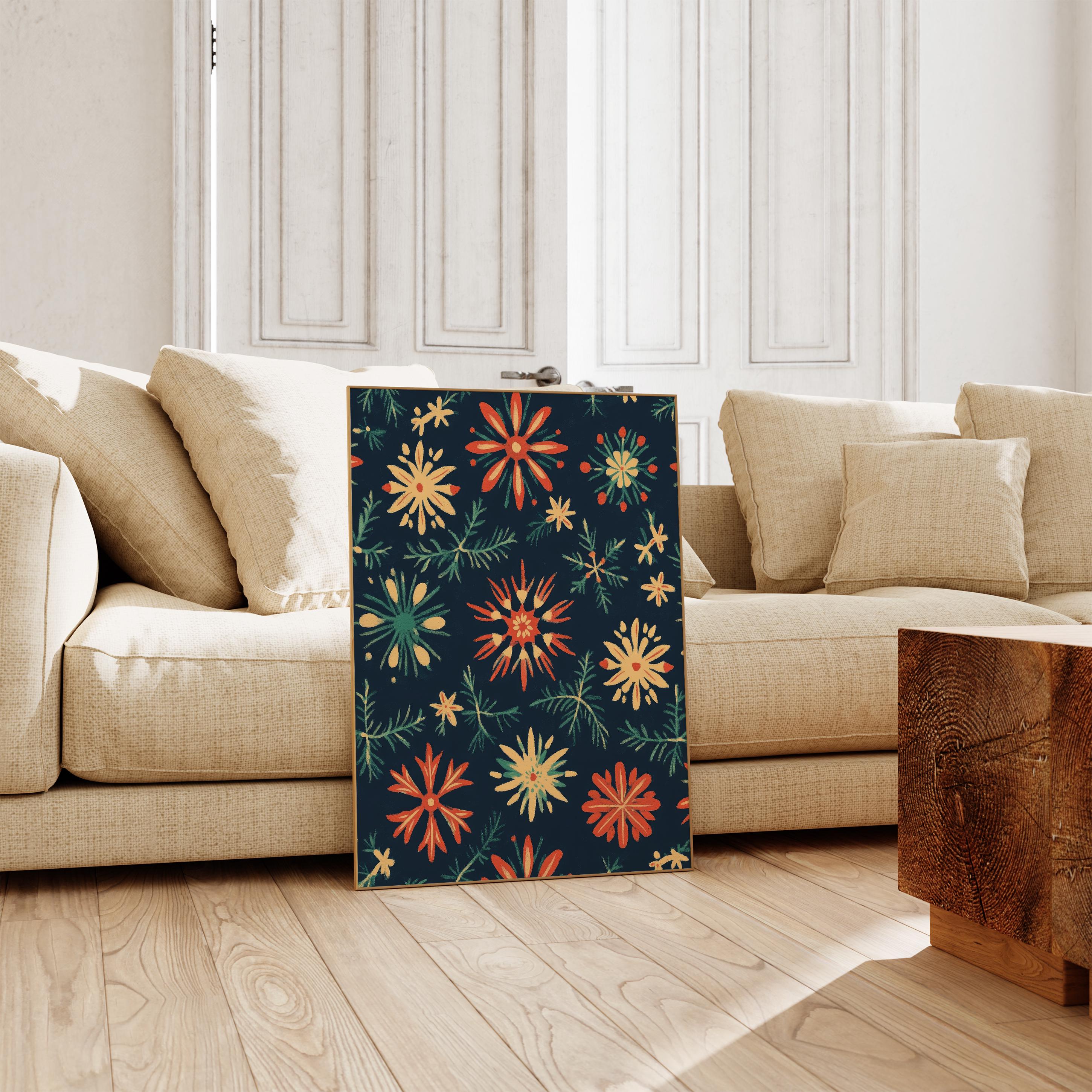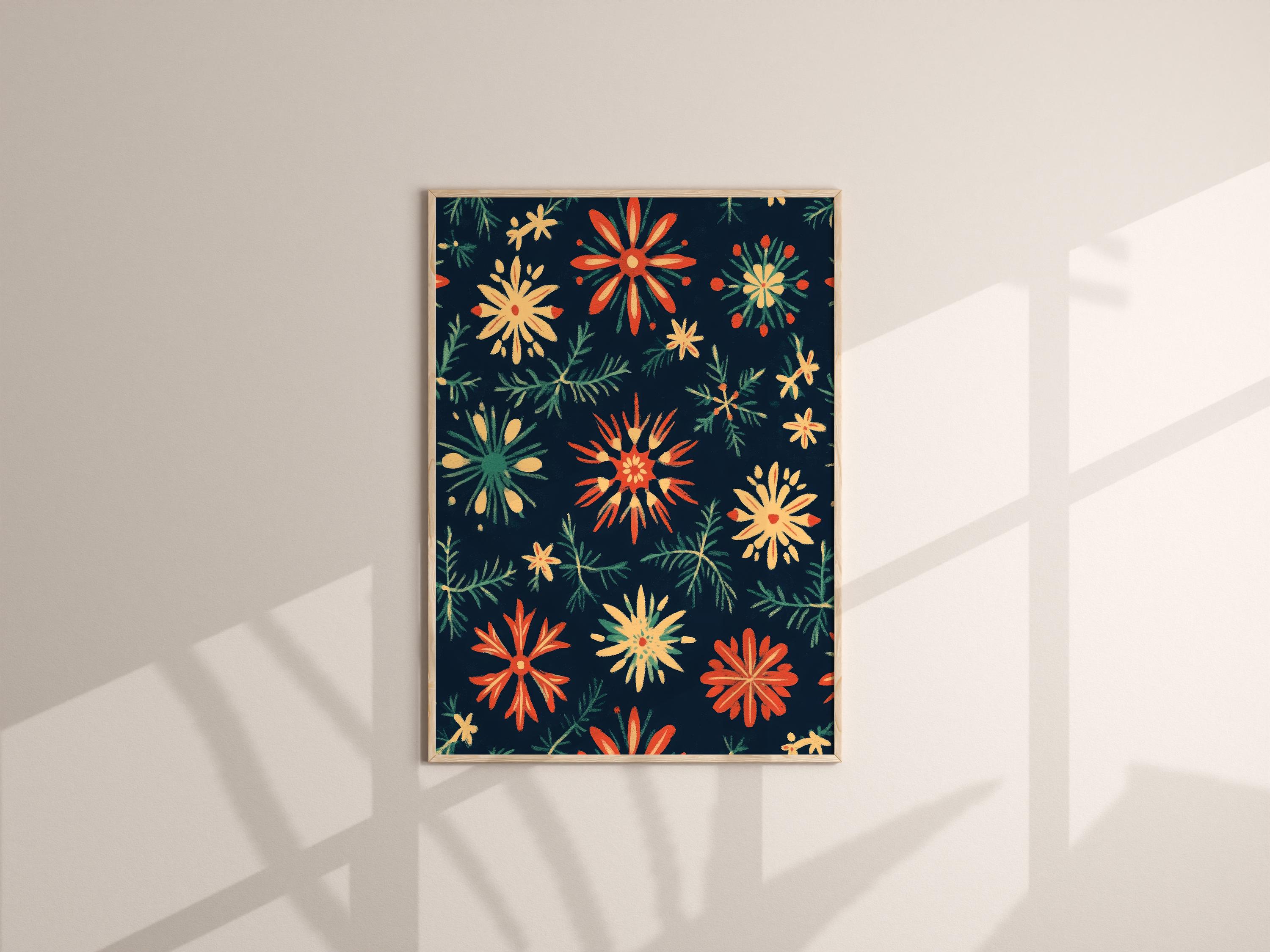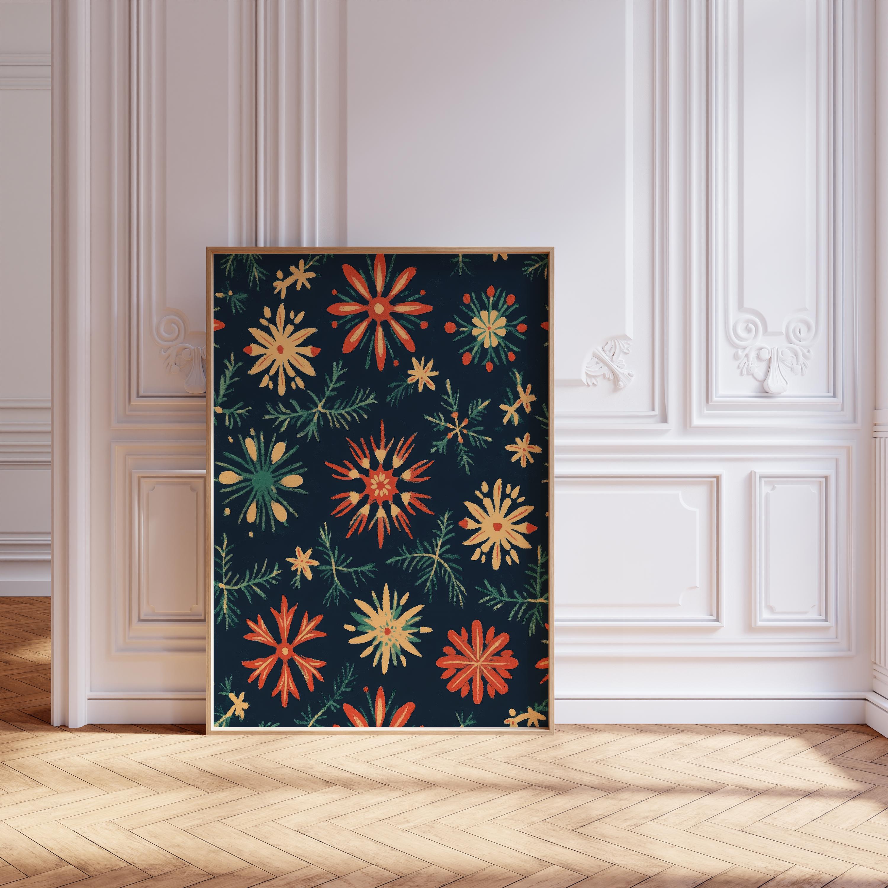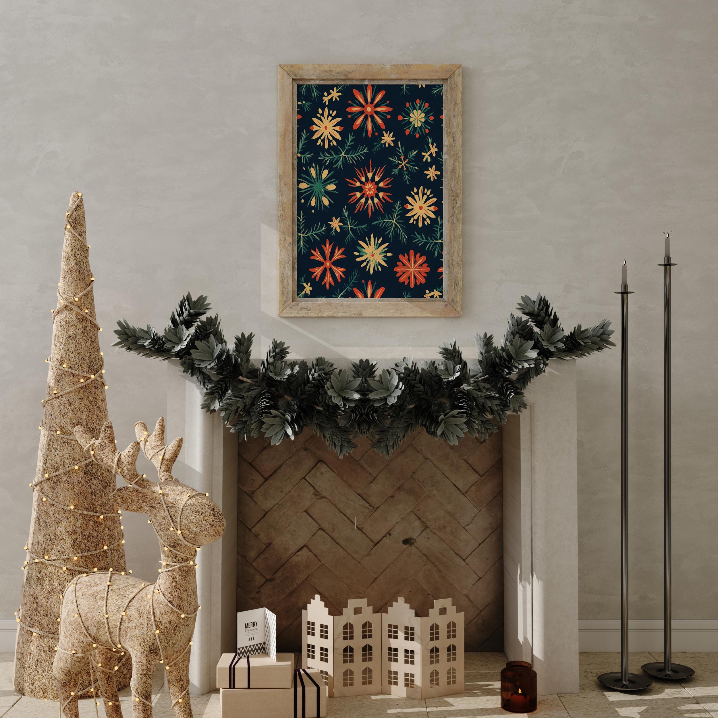 Bring Nordic charm and folk warmth to your space with this Scandinavian floral wall art. Inspired by traditional Christmas motifs, it blends rustic elegance with timeless botanical design. Ideal for cozy winter decor, festive styling, and all-year Scandinavian home atmosphere.