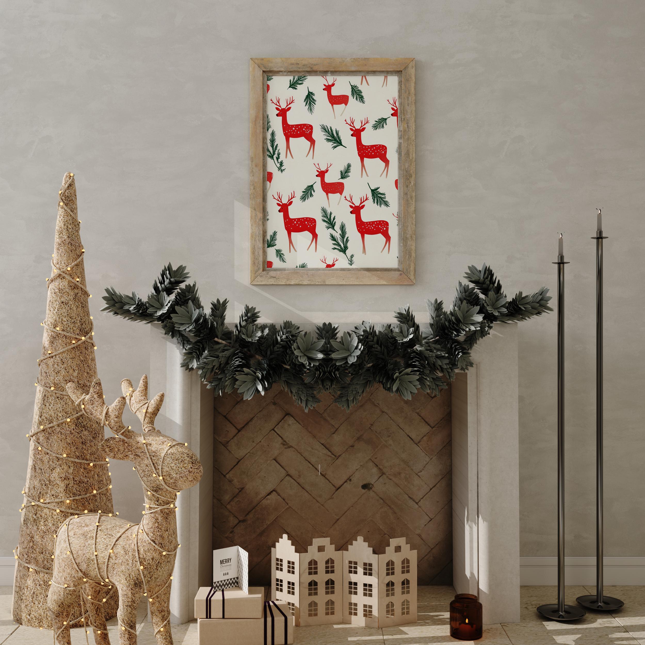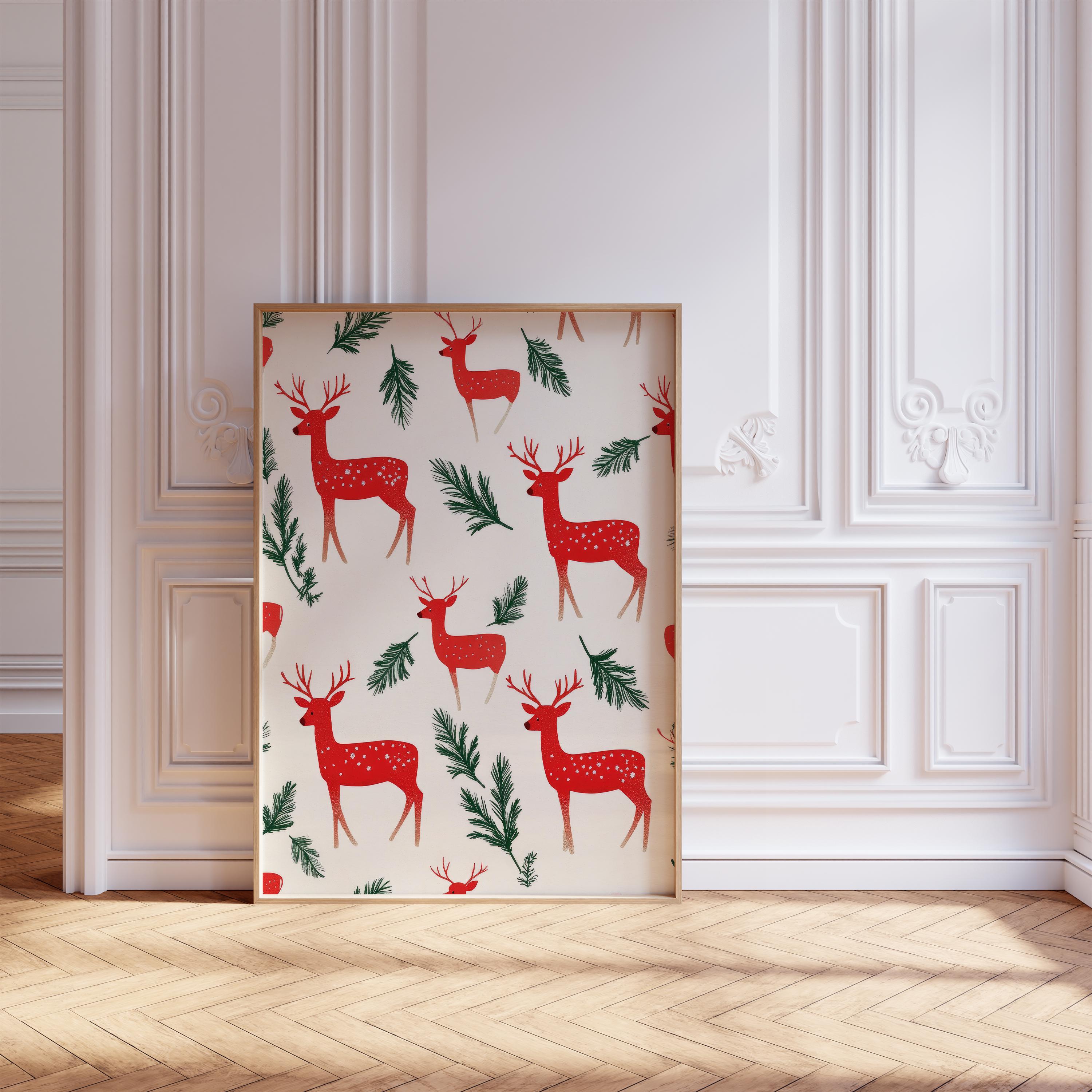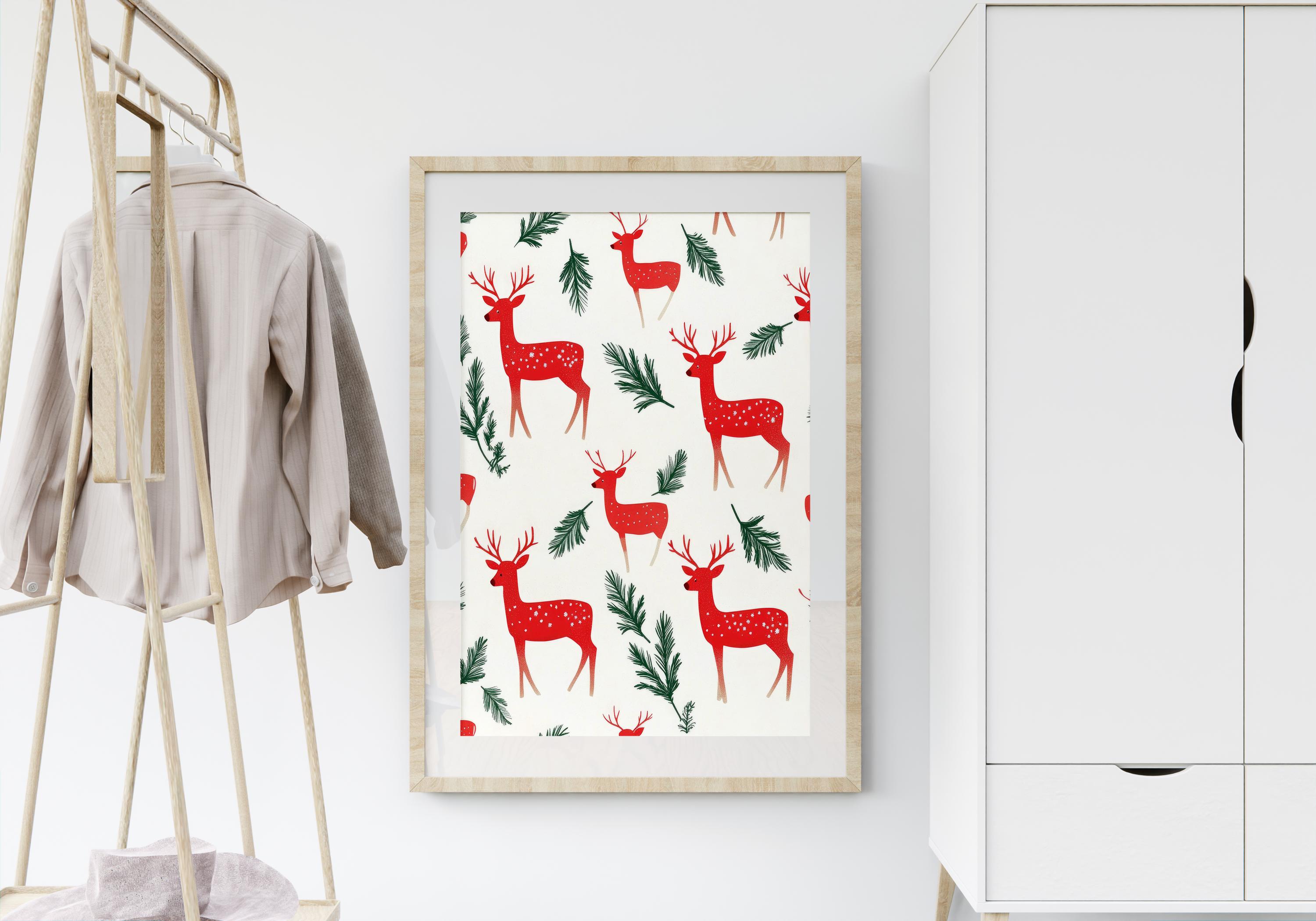 This Scandinavian Christmas Reindeer wall art captures the cozy and timeless spirit of Nordic winters.